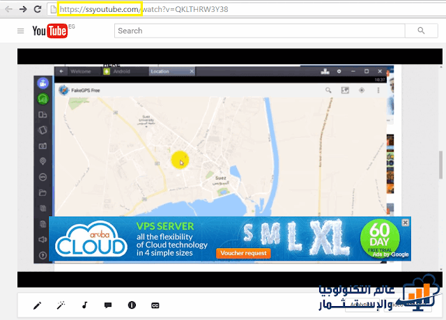 عن طريق موقع save-video.com وذلك بـ الدخول إلى الفيديو المراد تحميله على موقع اليوتيوب ووضع كلمة link قبل كلمة youtube والضغط على إنتر كما بـ الصوره: